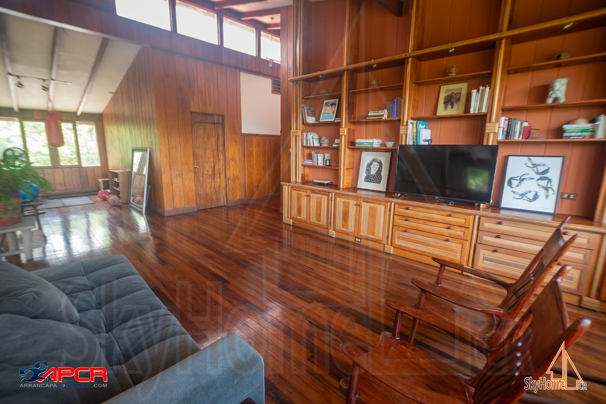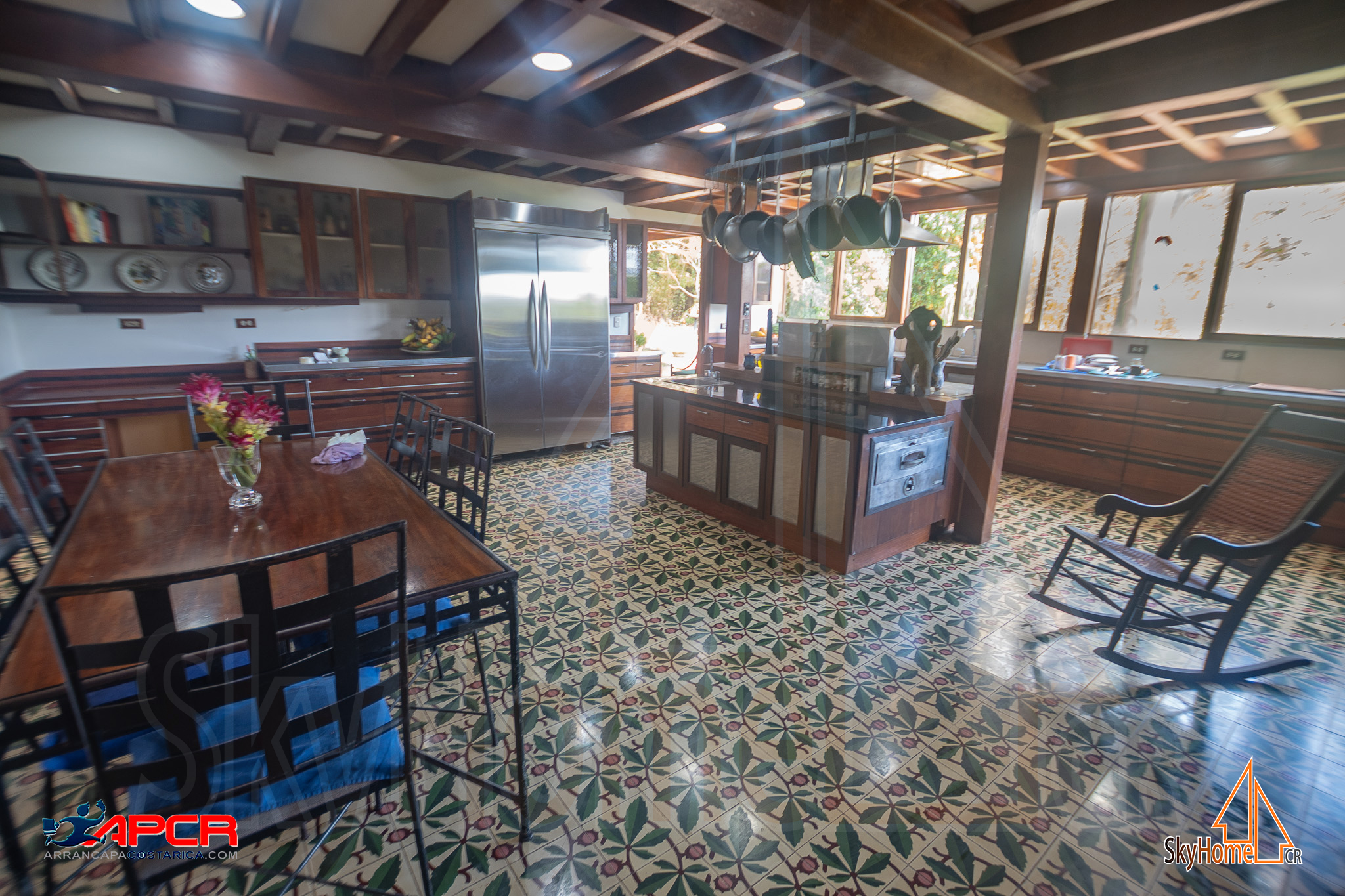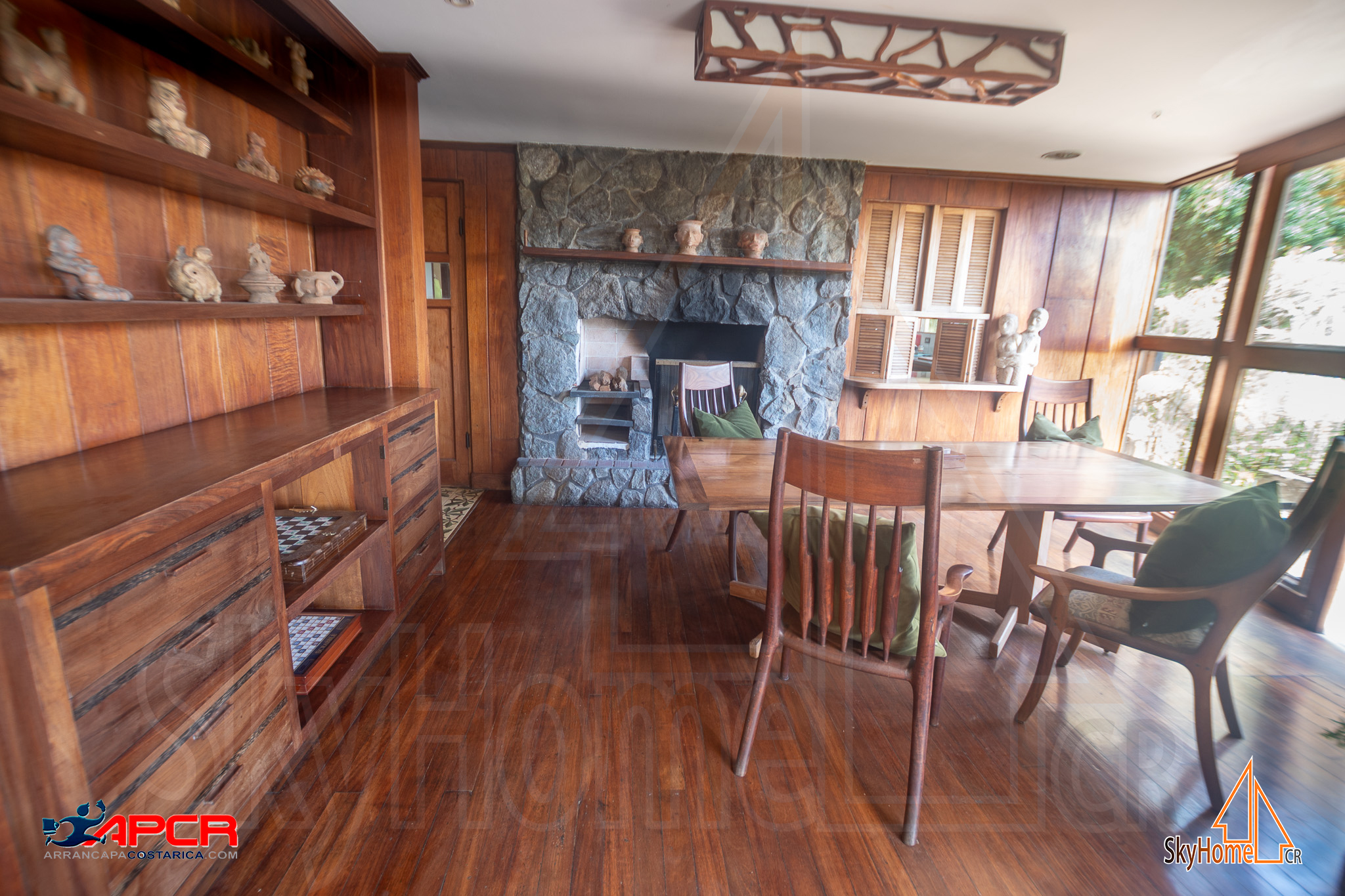 - Cocina profesional, biblioteca, sala familiar con chimenea.